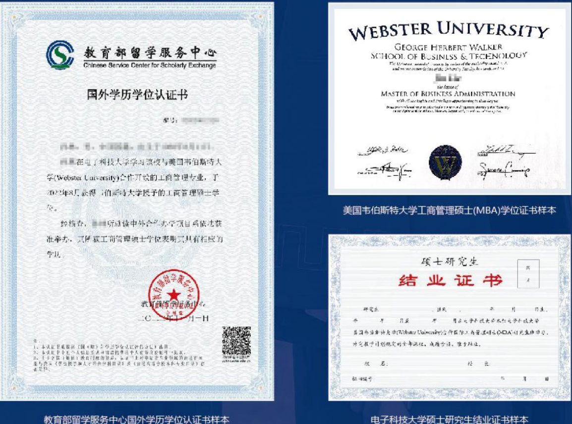 1.美国韦伯斯特大学工商管理硕士(MBA)学位证书