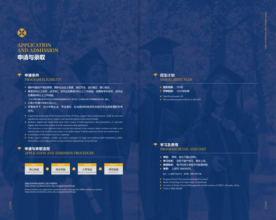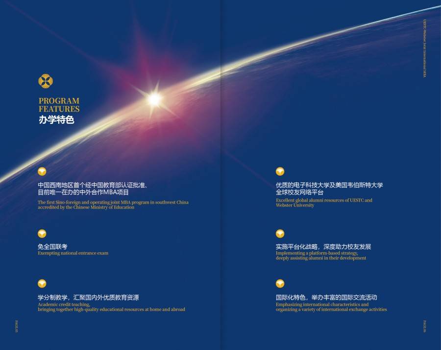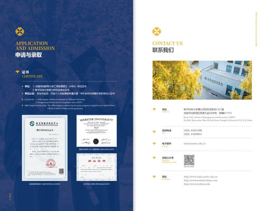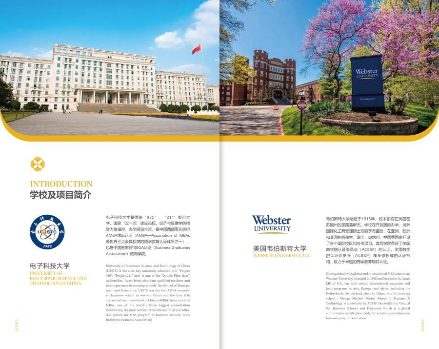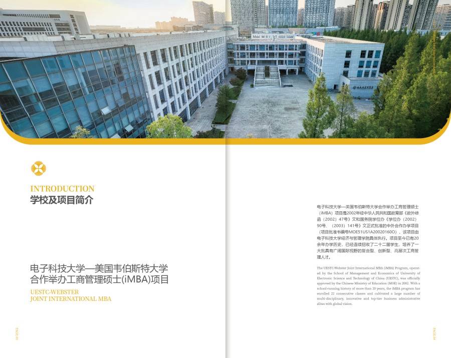 电子科技大学一美国韦伯斯特大学合作举办工商管理硕士(iMBA)项目是2002年经中华人民共和国教育部《教外综函(2002)47号》文和国务院学位办《学位办(2002)90号、(2003)141号》文正式批准的中外合作办学项目(项目批准书编号MOE51US1A20020160O),该项目由电子科技大学经济与管理学院具体执行。项目至今已有20余年办学历史,已经连续招收了二十二届学生,培养了一大批具有广阔国际视野的复合型、创新型、高层次工商管理人才。