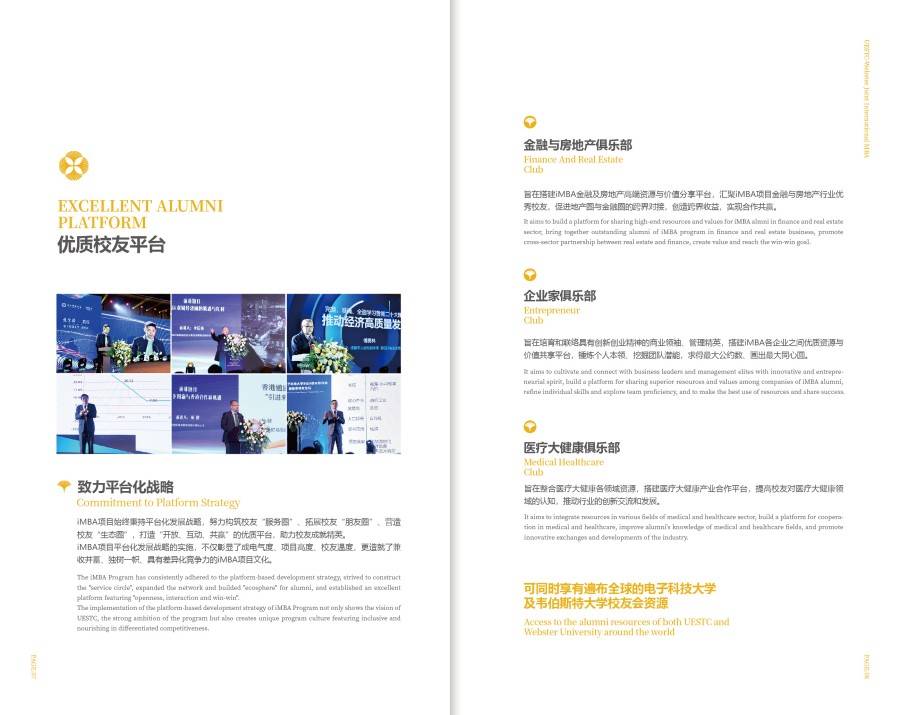 共享电子科技大学(国内顶尖高校,覆盖科技、企业、政府领域)与韦伯斯特大学(全球校区,链接国际商业网络)的校友资源,助力职业发展与合作机会拓展;