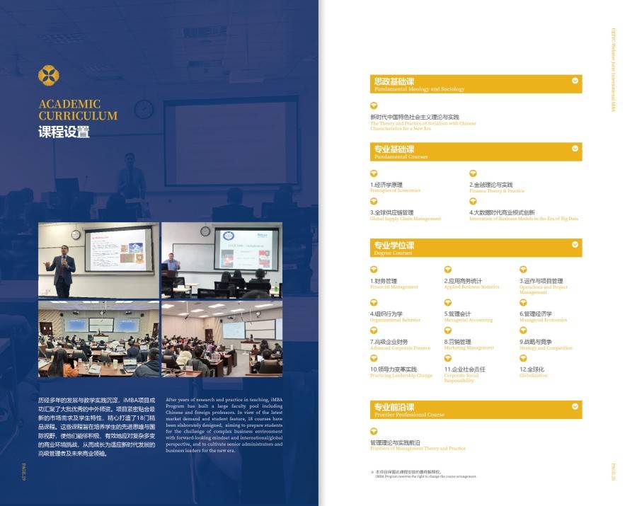 采用学分制管理(需累计修满 108 学分),汇聚中外优质师资与课程资源,课程设计贴合国际商业趋势,兼顾理论深度与实战应用;